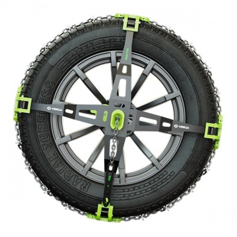 Specijalni gumeni elementi za zatezanje na Tractivi omogućavaju da se lanac koristi i postavlja na nove i istrošene gume, dok pametna funkcija samozatezanja obezbeđuje savršeno prijanjanje.